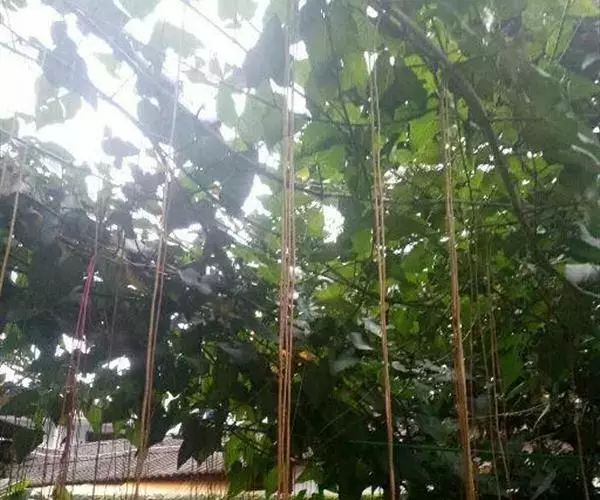 苗期管理:银屏藤苗苗期的生长期间施两次促苗生长的化肥,在栽培的第一年就可以把棚架覆盖完全。锦屏藤在苗期可以在茎节上生长出一些红色的气根,但这些气根要在银屏藤植株生长到棚架上的时候就要摘除掉。