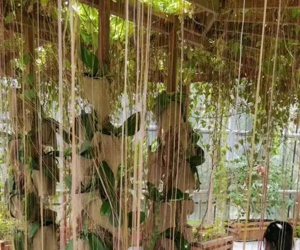 ⑴篱垣式:绿化地段主要是阳台隔帘、隔墙、篱架、护栏、铁丝网等, 具有屏障、隔离及装饰的功能,绿化效果侧重于由浓密叶片构成的绿墙及垂挂而下易拨动梳剪的气根。