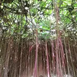 ⑷盘栽:为微型棚架式,具有观赏的功能,观赏效果主要是通过固定造型形成的各式绿架及悬挂而下的气根。