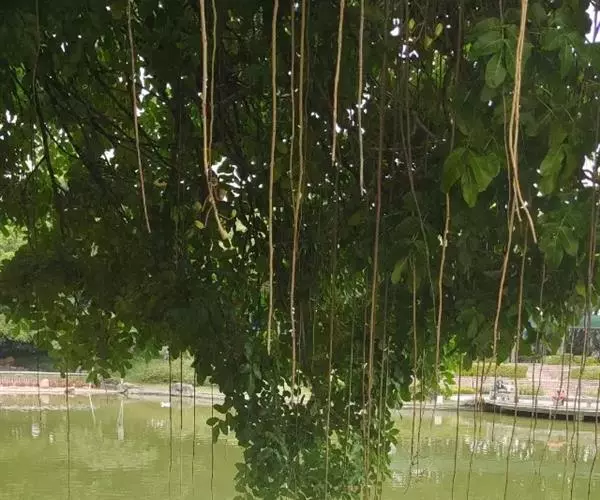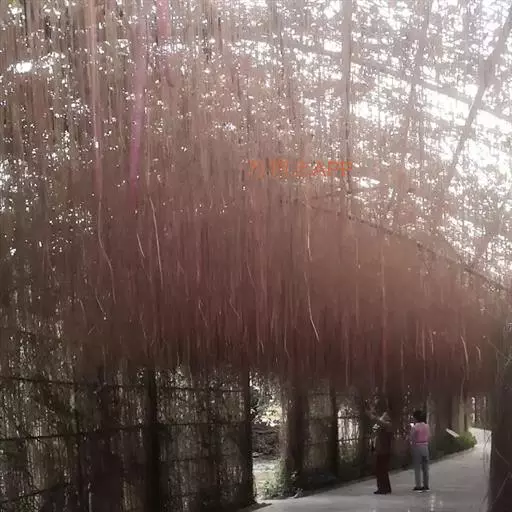 ⑶绿廊式:绿化地段主要是公共小游园、居住小区的凉棚及休闲地段的大型廊架等,具有遮阴、屏障、休憩的功能,绿化效果侧重覆盖于顶部的常绿叶片及悬挂遮挡两侧的气根。