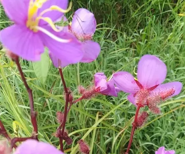 金锦香,别名:杯子草、小背笼、细花包、张天缸、昂天巷子、朝天罐子、 金锦香 细九尺、金香炉、装天甕、马松子、天香炉,拉丁文名:Osbeckia chinensis L. 被子植物门;双子叶植物纲;桃金娘目;野牡丹科;金锦香属;金锦香。