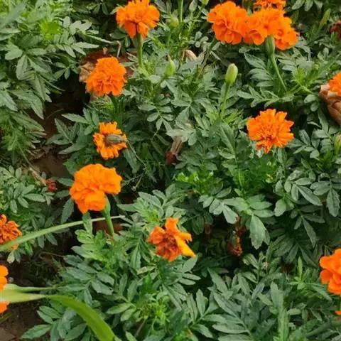 万寿菊是菊科万寿菊属一年生草本植物,别名孔雀菊、缎子花、臭菊花、西番菊、红黄草、小万寿菊、臭芙蓉、孔雀草。万寿菊茎近基部分枝。叶羽状分裂,长5-10厘米,宽4-8厘米,裂片长椭圆形或披针形,具锐齿,上部叶裂片齿端有长细芒,叶缘有少数腺体。头状花序单生,径5-8厘米,花序梗顶端棍棒状。总苞长1.8-2厘米,径1-1.5厘米,杯状,顶端具尖齿。舌状花黄或暗橙黄色,长2.9厘米,舌片倒卵形,长1.4厘米,基部成长爪,先端微弯缺。管状花花冠黄色,长约9毫米,冠檐5齿裂。瘦果线形,被微毛;冠毛有1-2长芒和2-3短而钝鳞片。花期7-9月。万寿菊中国各地均有栽培,在广东和云南南部、东南部已归化,国外原产墨西哥。万寿菊对土壤要求不严,但以肥沃疏松排水良好的土壤为好。耐移栽,种子发芽适温21-24℃,植株生长适合温度为20-29℃。喜温暖和阳光充足的环境,不