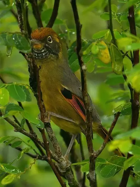 金头伪缝叶莺:体长10-12厘米,是一种体型小的棕顶冠、黄色腹森林莺类。头顶亮黄色,具明显的黄色眉…