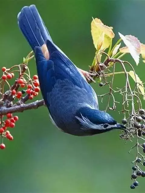 蓝绿鹊:中型鸟类,共有5个亚种。体长36-38厘米。尾长,嘴、脚红色。通体羽色主要为草绿色,…