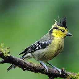 黄颊山雀是雀形目山雀科山雀属鸟类。雄鸟额、头顶和羽冠为具有光泽的黑色;额基、眼先、眉纹、脸颊和耳羽等头颈侧为鲜艳的明黄色;贯眼纹黑色;后颈亦具一黄斑;上体灰黄绿色,羽缘黑色;尾羽黑色具蓝灰色羽缘,基部白色;下体颏、喉至上胸为富有金属光泽的黑色;胸下有一黑色宽中央纵纹,一直延伸至肛周;其余下体白色;胸侧和两胁染黄色或蓝灰色;虹膜暗褐色;喙黑色;脚铅蓝灰色至铅黑色。雌鸟似雄鸟,但上体光泽较弱,胸腹部黑色纵带不明显。黄颊山雀分布于亚洲东南部地区,在中国分布于华中、华南和西南等地。栖息于中低山常绿阔叶林、针叶林和混交林中,也见于山麓疏林灌丛草坡或茶园、果园等地。常成对或小群活动,也和大山雀等其他小型鸟类混群,活跃地在乔灌木枝叶间飞翔跳跃。主食鳞翅目和鞘翅目等昆虫,兼食植物种实。繁殖期在4-6月,营巢于树洞、岩隙或墙缝中。窝卵数为3-7枚,卵灰白色且有红褐斑,雏鸟晚成。黄颊山雀被列入中国林业局200