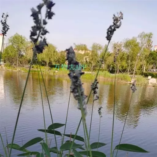 再力花(学名:Thalia dealbata Fraser):竹芋科,再力花属多年生挺水草本植物。叶卵状披针形,浅灰蓝色,边缘紫色,长50厘米,宽25厘米。复总状花序,花小,紫堇色。全株附有白粉。 花柄可高达2米以上,细长的花茎可高达3公尺,茎端开出紫色花朵,像系在钓竿上的鱼饵,形状非常特殊。