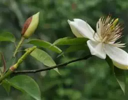 深山含笑是木兰科含笑属常绿大乔木。株高达20米;芽、幼枝、叶下面、苞片均被白粉;叶为革质宽椭圆形,…