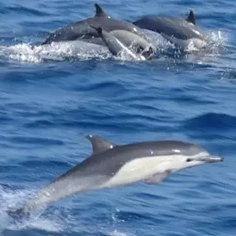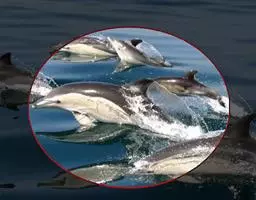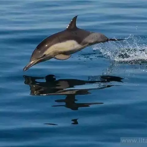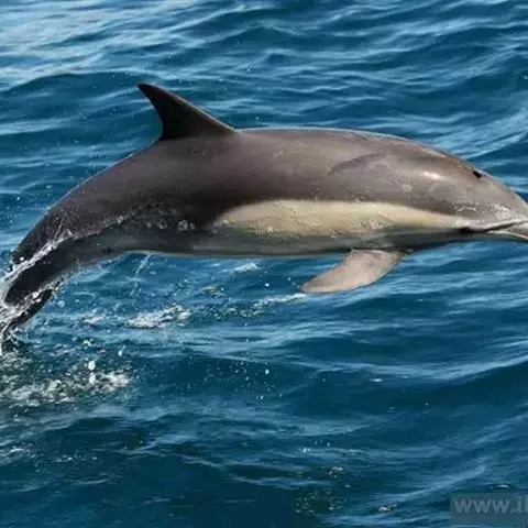 真海豚,身体细而流线型。体色十分复杂而独特,通常十字交叉型,黄褐色在前灰色在后,背面黑色向下延伸,…