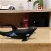 虎鲸(学名:Orcinus orca),虎鲸属,是一种大型齿鲸,海豚科动物,原则上可视作一种鲸鱼,一种海豚。其中大西洋2型、南极A型虎鲸以鲸类甚至蓝鲸为主要食物,远洋型虎鲸以鲨鱼为主要食物,是当之无愧的海中霸王。身长可达8-10米,体重9吨左右,头部略圆,具有不明显的喙;背鳍高而直立,弯曲长达1米;身体黑、白两色。两翼骨远隔开。颞窝大。下颌骨相对较短。在上、下颌每齿列有10-12枚圆锥形的齿。嘴巴细长,牙齿锋利,性情凶猛,善于进攻猎物。