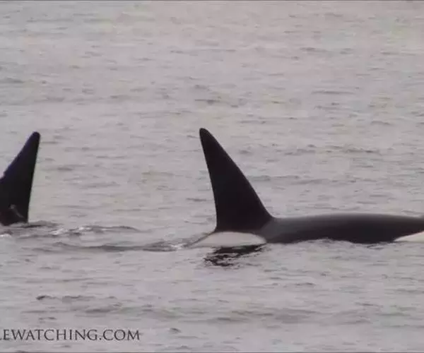 居留鲸也叫定居鲸,因活动范围相对固定而得名,通常由雌性首领及子孙后代构成,成员数量在五六只到十几只不等,生活在东太平洋地区的居留鲸又细分为五个类群:北方居留鲸,南方居留鲸,南阿拉斯加居留鲸,西阿拉斯加居留鲸和西北太平洋居留鲸。这类虎鲸性格相对温顺,主要以鲑鱼为食,除南方居留鲸偶尔会攻击其他海洋哺乳动物外,其他的群体没有被发现攻击海洋哺乳动物的情况,北方居留鲸甚至还会和比自己小很多的海豚一起嬉戏玩耍。居留鲸最明显的标记要算背鳍和靠近背鳍的灰斑了,灰斑的上方有很大的分叉,看上去有些呈“V”型;背鳍如月牙般弯曲向上,并且在顶端形成明显的弯角弧度。在捕猎时,居留鲸会发出声呐信号,利用回声定位锁定鲑鱼群的位置。