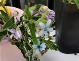 紫花络石,是夹竹桃科、络石属常绿木质藤蔓植物,,全株具白色乳汁,叶对生,具羽状脉。花序聚伞状,花白…