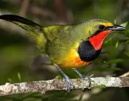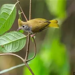 黄喉噪鹛(学名:Garrulax galbanus)体型略小,顶冠蓝灰色,特征为具黑色的眼罩和鲜黄色的喉。上体褐色,尾端黑色而具白色边缘,腹部及尾下覆羽皮黄色而渐变成白色。黄喉噪鹛隐匿于亚热带常绿林和浓密灌丛,于地面杂物中取食,喜食昆虫,也吃些蚯蚓、野生草莓、野杉树树籽等。分布于印度阿萨姆的东北部至缅甸掸邦。在中国东南部及云南南部有两个相对独立群体。