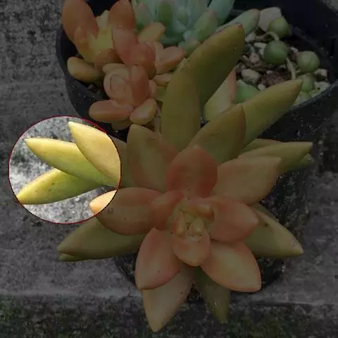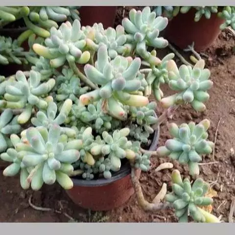 白厚叶弁庆的自然变种 白厚叶弁庆还有一个自然变种叫Sedum allantoides var.goldii,中文名不详。叶片形状为倒卵形,其他特征均与白厚叶弁庆相像。
