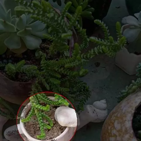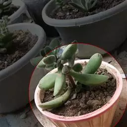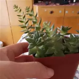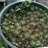 巴,学名:Crassula hemisphaerica,多年生肉质草本植物、也称多浆植物,植株具短茎,肉质叶半圆形,交互对生,上下叠接呈十字形排列,叶面绿色,有光泽,因密生白色细小疣突而略显粗糙,顶端有椭圆形尖头,全缘具白色毫毛,基部易生侧芽。聚伞花序,小花白色。