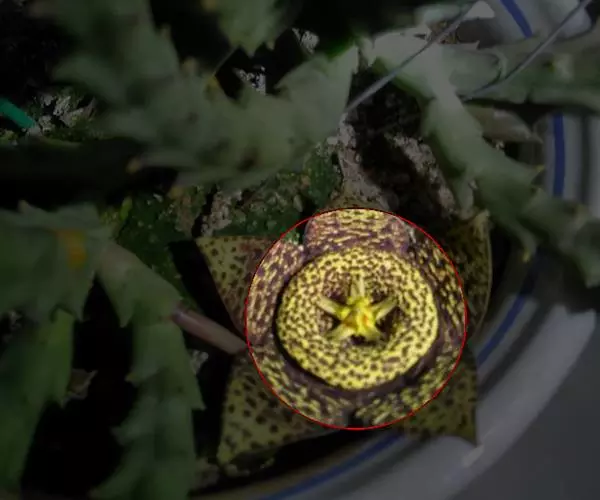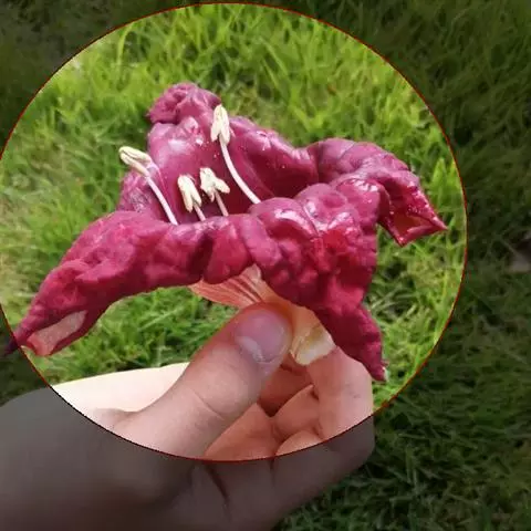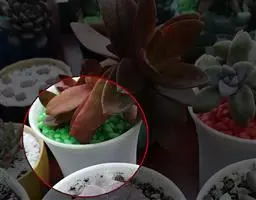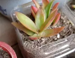 叶子表面宽厚,富肉质感且带有磨纱质感,看像石头质地;开红色小花,生于植株顶部,倒伞形密生,形状像花…