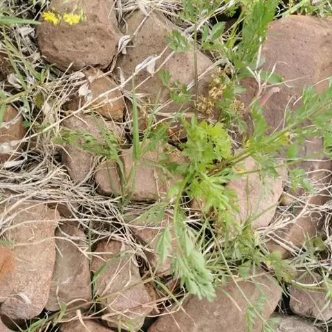 一年生草本,高10-60厘米。根圆锥状,较细长。 茎直立或斜上,多分枝,中空,表面具深条棱,粗糙。