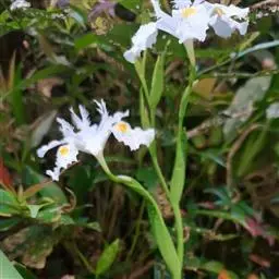 亮叶鸢尾为常绿多年生草本植物。叶面光滑、亮绿色,花茎扁平叶状。原产于巴西。