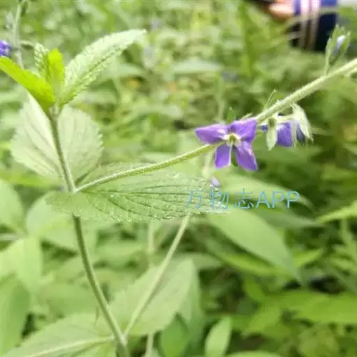 植株高(15)50-80厘米,全体被白色多细胞柔毛。茎直立或上升,不分枝。叶无柄或具极短的叶柄,叶片卵形或卵状三角形,长2-5厘米,宽1-3厘米,边缘具深刻的粗锯齿,多为重锯齿。总状花序单支或成对,侧生于茎中上部叶腋,长而花疏离,果期长达20厘米;苞片宽条形或倒披针形,长约5毫米;花梗比苞片短得多;花萼裂片条状长椭圆形,花期长4毫米,果期长5-6毫米;花冠辐状,紫色或蓝色,直径6-10毫米,裂片圆形至菱状卵形;雄蕊与花冠近等长。蒴果倒心形,长4-5毫米,宽5-6毫米,基部楔状浑圆,有多细胞睫毛,花柱长3-4毫米。种子南瓜子形,长略过1毫米。花期6月。2n=46