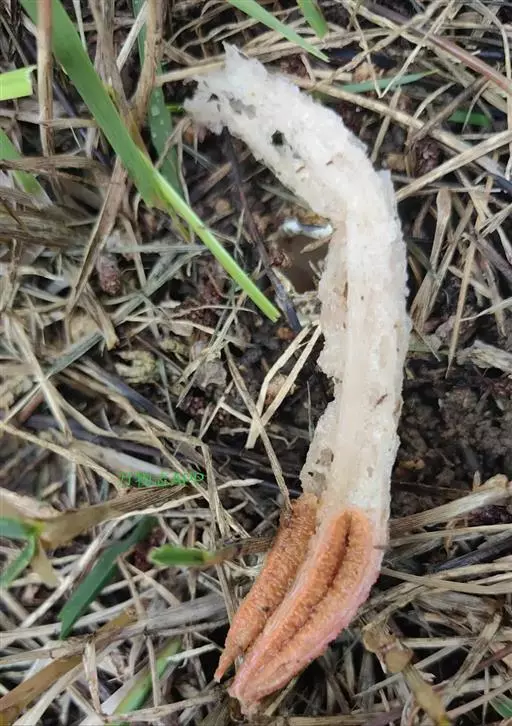 红鬼笔 生态习性:夏秋季在菜园、屋旁、路边、竹林等地上成群生长。多生长在腐殖质多的地方。