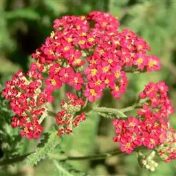 蓍(学名:Achillea millefolium L.)是菊科,蓍属多年生草本植物,匍匐根茎细。茎直立,高可达100厘米,有细条纹,叶无柄,叶片二至三回羽状全裂,头状花序多数,总苞矩圆形或近卵形,疏生柔毛;总苞片覆瓦状排列,托片矩圆状椭圆形,膜质,舌片近圆形,白色、粉红色或淡紫红色,盘花两性,管状,黄色,瘦果矩圆形,7-9月开花结果。