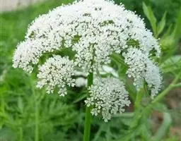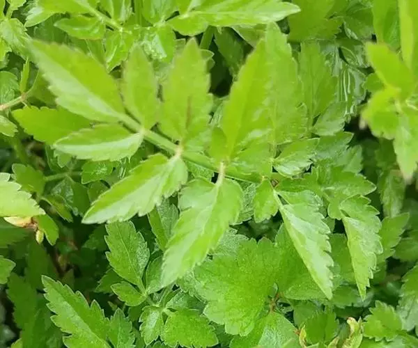 水芹(Oenanthe javanica (Bl.) DC.)是伞形科,水芹属多年生草本植物,茎直立或基部匍匐。基生叶有柄,基部有叶鞘;叶片轮廓三角形。复伞形花序顶生;无总苞;伞辐不等长,直立和展开;萼齿线状披针形,花瓣白色,倒卵形,有一长而内折的小舌片;花柱基圆锥形,直立或两侧分开。果实近于四角状椭圆形或筒状长圆形,侧棱较背棱和中棱隆起,木栓质。花期6-7月,果期8-9月。