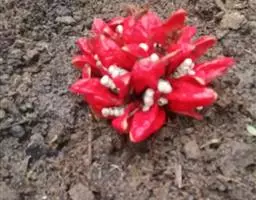 穗状花序密生多花,球果状,顶生或稀生于自根茎抽出的花葶上;苞片覆瓦状排列,内有花1-2朵;花萼管状,顶端三裂;花冠管比花萼长或近等长,裂片3,近相等,无侧生退化雄蕊;唇瓣大,倒卵形,边缘常皱褶;雄蕊长圆形,花瓣状,其上有细长、2室的花药,无上位腺体,有陷入子房的隔膜腺;子房3室,胚珠多数。