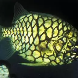松球鱼为暖水性底层海鱼,因体被大栉鳞、形似松果球而得名。在它头部的发光器官中与其共生着费氏弧菌。当…