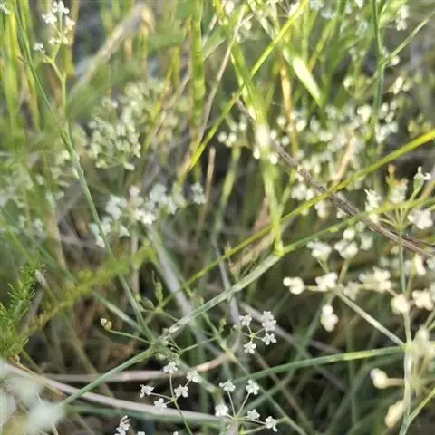 复伞形花序呈圆锥状,花序梗不等长,总苞片1,呈线形或钻形,长4-10毫米,宽0.5-1.5毫米;伞辐2-3,不等长,长5-35毫米;小总苞片1-3,长2-3毫米,宽不及1毫米。小伞形花序有花2-4;花柄极不等长;萼齿细小,呈三角形;花瓣白色,倒卵形,长1-1.2毫米,宽约1毫米,顶端有内折的小舌片;花丝短于花瓣,花药卵圆形,长约0.3毫米;花柱基圆锥形,花柱短,直立。分生果线状长圆形,长4-6毫米,宽2-2.5毫米,合生面略收缩,胚乳腹面近平直,每棱槽内有油管1-3,合生面油管4。花期4-5月,果期6-10月。