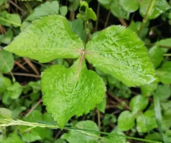 多年生草本,高20-100厘米。主根短,侧根多数,细长。茎直立,光滑,有分枝。表面有时略带淡紫色。基生叶或上部叶有柄,叶柄长5-20厘米,叶鞘边缘膜质;叶片轮廓三角形至广卵形,长2-14厘米,宽3-17厘米,通常为3小叶;中间小叶片呈菱状倒卵形或心形,长2-14厘米,宽1.5-10厘米,顶端短尖,基部楔形;两侧小叶片斜倒卵形至长卵形,长1.5-13厘米,宽1-7厘米,近无柄,所有的小叶片边缘有不规则的尖锐重锯齿,表面绿色,背面淡绿色,两面叶脉隆起,最上部的茎生叶近无柄,小叶片呈卵状披针形至窄披针形,边缘有锯齿。