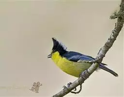 台湾黄山雀体长约13厘米。头顶至后颈黑色,有一长的黑色羽冠,羽冠末端和后颈中央白色。背苍绿色,…