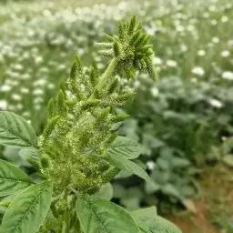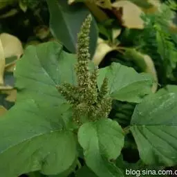 反枝苋是苋科苋属的一年生草本植物。株高达1米;茎密被柔毛;叶菱状卵形或椭圆状卵形,先端锐尖或尖凹,…