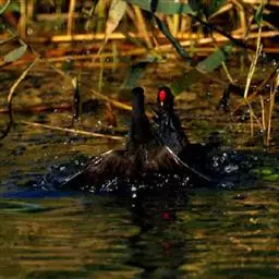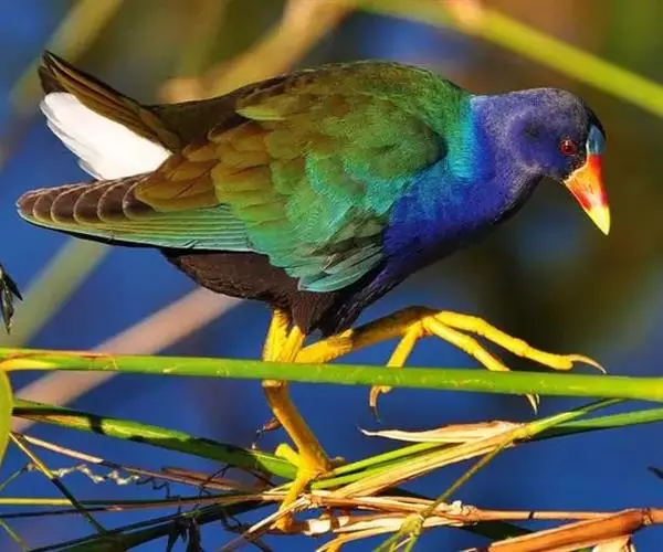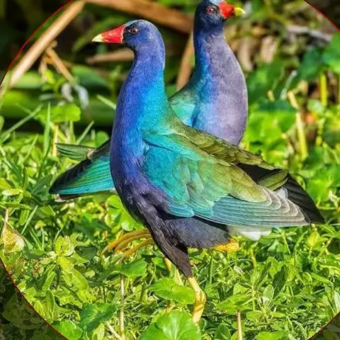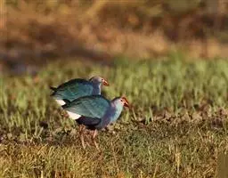 紫青水鸡 一般是独栖的,每到繁殖季节,雌雄才会成双成对共同建立领域,由雄鸟造巢。雌鸟在巢造好后便可产下5-10枚卵,夫妻双方轮流孵化3周后,雏鸡就会出壳,再过两个月雏鸟就会飞翔。