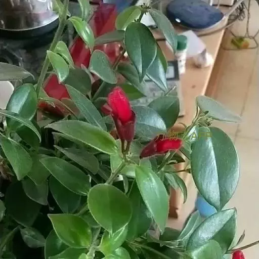 毛萼口红花,多年生藤本植物。植株蔓生,枝条下垂,茎绿色。喜明亮的散射光环境。生长适温21~26℃,要求排水良好、略带酸性的土壤。原产马来半岛及爪哇等地。