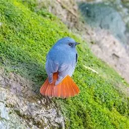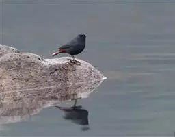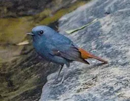 赭红尾鸲:小型鸟类,体长13-16厘米。雄鸟前额、头侧、颈侧、颏至胸概黑色,头顶和背灰色或黑色,…