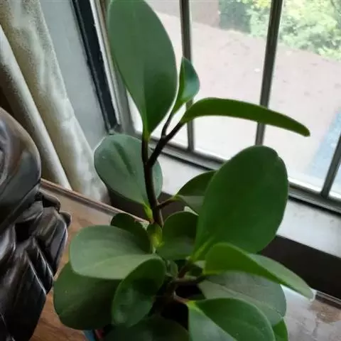 圆叶椒草直立性植株,高约30 cm。单叶互生,叶椭圆形或倒卵形。叶端钝圆,叶基渐狭至楔形。叶面光滑…