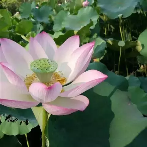 莲是莲科莲属的水生草本植物。莲的根茎肥厚,横生地下;叶盾状圆形,伸出水面,叶柄中空,…