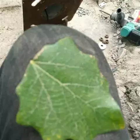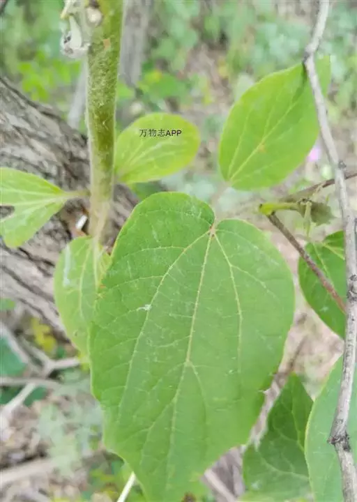 叶厚纸质,卵形至卵状披针形,长8-18厘米,宽4-10厘米,先端渐尖或急尖,尖头有的长尾状,基部圆形或心形,有2-4个圆形和紫色腺体,边缘有浅钝齿,上面深绿色,有光泽,脉上有毛,下面淡绿色,有短柔毛,掌状脉,中脉在上面凹,在下面突起,近对生的侧脉5-8对;叶柄长2-6厘米,初时有疏长毛,果熟后近无毛。