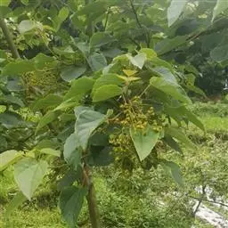 山拐枣,拉丁文名:Idesia sinensis Oliv.,大风子科、山拐枣属落叶乔木,树皮灰褐色,浅裂;小枝圆柱形,性脆,灰白色,幼时有短柔毛,老时无毛。叶厚纸质,卵形至卵状披针形,初时有疏长毛,果熟后近无毛。花单性,雌雄同序,蒴果长圆形,外果皮革质,有灰色毡毛,内果皮木质;种子多数,周围有翅,扁平。生于海拔400-1500米的山坡、山脚常绿、落叶阔叶混交林和落叶阔叶林中。木材结构细密,材质优良,供家具、器具等用;花多而芳香,为蜜源植物。