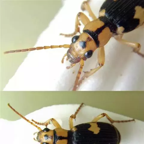 中华婪步甲,昆虫纲,鞘翅目,步甲科昆虫。体黑色,有光泽;上颚部分、上唇周缘、口须、触角、前胸背板侧缘及后部棕红色;体腹面黑褐色。头部光洁无刻点。成虫出现于6—9月份,是农区较常见种类。捕食红蜘蛛、蚜虫等昆虫,但也能取食小麦、大麦、燕麦及黍类作物的种子。分布在朝鲜、日本、俄罗斯、中国。