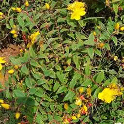 金丝梅是金丝桃科金丝桃属丛状灌木。全株无毛,枝条纵线棱,褐色或红褐色;单叶对生,…
