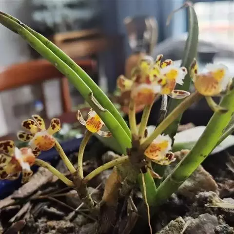 在春秋两季均可进行,一般每隔三年分株一次。凡植株生长健壮,假球茎密集的都可分株,分株后每丛至少要保存5个连结在一起的假球茎。分株前要减少灌水,使盆土较于。分株后上盆时,先以碎瓦片覆在盆底孔上,再铺上粗石子,占盆深度1/5至1/4,再放粗粒土及少量细土,然后用富含腐殖质的沙质壤土栽植。栽植深度以将假球茎刚刚埋入土中力度,盆边缘留2厘米沿口,上铺翠云草或细石子,最后浇透水,置阴处10-15天,保持土壤潮湿,逐渐减少浇水,进行正常养护。