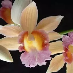 花序近伞形,1-4个,出自茎的基部侧旁,常具5-8朵花;花序柄粗壮,劲直,长1-2厘米,具2枚杯状鞘;花苞片宽卵形,长约3毫米,先端钝;花梗和子房长1-1.5厘米;花芳香,萼片和花瓣黄色带紫红色斑点;萼片几等大,近椭圆形,长6-12毫米,宽3.5-6毫米,先端钝,基部收狭。