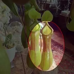 奶油葫芦猪笼草 葫芦猪笼草为原产于印度的N.Khasiana与N.gracilis杂交后代,1963年由杜米尼氏育成发表,是最耐低温的一种,栽培较普遍。捕虫囊绿色,下部膨大,状如葫芦,因而得名。