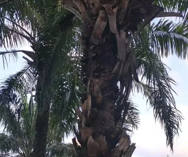 油棕(学名:Elaeis guineensis Jacq.)是棕榈科,油棕属直立乔木状植物,高可达10米或更高,叶多,羽状全裂,簇生于茎顶,羽片外向折叠,线状披针形,下部的退化成针刺状;叶柄宽。花雌雄同株异序,苞片长圆形,雄花萼片与花瓣长圆形,雌花序近头状,雌花萼片与花瓣卵形或卵状长圆形,果实卵球形或倒卵球形,熟时橙红色。种子近球形或卵球形。6月开花,9月结果。
