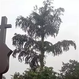 直立乔木状,高达10米或更高,直径达50厘米,叶多,羽状全裂,簇生于茎顶,长3-4.5米,羽片外向折叠,线状披针形,长70-80厘米,宽2-4厘米,下部的退化成针刺状;叶柄宽。