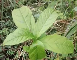叶表面观:下表皮细胞垂周壁波状弯曲,平周壁具角质纹理,气孔不定式或不等式,副卫细胞4-6个。上表皮细胞垂周壁稍波状弯曲,平周壁具角质纹理,气孔极少。非腺毛单细胞,少数有2细胞,长66-206μm,常弯曲,外壁有疣状突起,顶端常具有一凸头。叶肉薄壁细胞中含草酸钙簇晶,直径20-33μm。