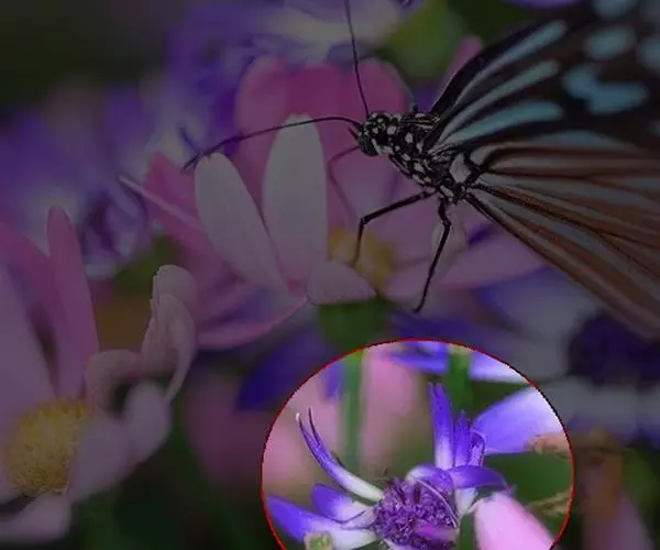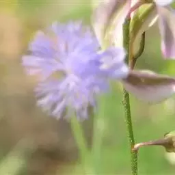 总状花序与叶对生,或腋外生,最上1个花序低于茎顶。花梗细,长约7毫米,被短柔毛,基部具1披针形、早落的苞片;萼片5,宿存,外面3枚披针形,长4毫米,外面被短柔毛,里面2枚花瓣状,卵形至长圆形,长约6.5毫米,宽约3毫米,先端圆形,具短尖头,基部具爪;花瓣3,白色至紫色,基部合生,侧瓣长圆形,长约6毫米,基部内侧被短柔毛,龙骨瓣舟状,具流苏状鸡冠状附属物;雄蕊8,花丝长6毫米,全部合生成鞘,鞘1/2以下与花瓣贴生,且具缘毛,花药无柄,顶孔开裂;子房倒卵形,径约2毫米,具翅,花柱长约5毫米,弯曲,柱头2,间隔排列。