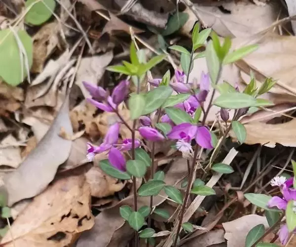 瓜子金,别名:辰砂草、金锁匙、瓜子草、挂米草、高脚瓜子草、产后草,拉丁文名:Polygala japonica Houtt. 为远志科、远志属植物,瓜子金的全草。采制 春、夏、秋季采挖,除去泥沙,晒干。用于咳嗽、痰多、慢性咽喉炎、跌扑损伤、疔疮疖肿、毒蛇咬伤。多年生草本,高10~30cm。根圆柱形,表面褐色,有纵横皱纹和结节,支根细。茎丛生,微被灰褐色细毛。叶互生,带贰质,卵状披针形,长1~2cm,宽0.5~1cm,侧脉明显,有细柔毛。总状花序腋生,花紫色;萼片5,不等大,内面2片较大,花瓣状;花瓣3,基部与雄蕊鞘相连,中间1片较大,龙骨状,背面先端有流苏状附属物;雄蕊8,花丝几全部连合成鞘状;子房上位,醉头2裂,不等长。蒴果广卵形,顶端凹,边缘有宽翅,具宿萼。种子卵形,密被柔毛。花期4~5月,果期5~8月。生于山坡草丛中,路边。主产安徽、浙江、江苏。