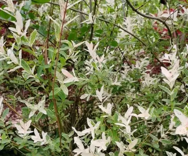 落叶灌木,高1-3米,树冠广展,新叶具乳白和粉红色斑。喜光,耐寒,耐湿,生长势强,冬末需强修剪。春季观新叶。