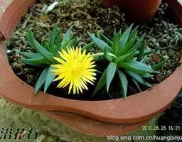 照波,番杏科多肉植物、 此种生长较快,栽培容易,细长的浓绿色叶3厘米左右,开黄色花。…